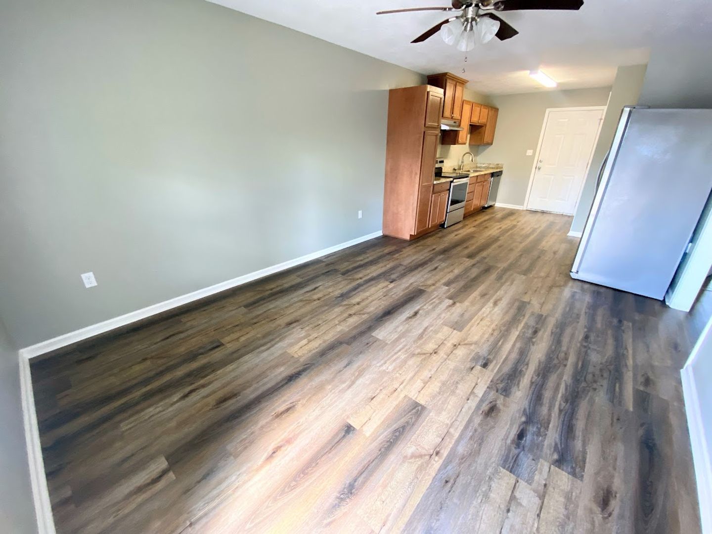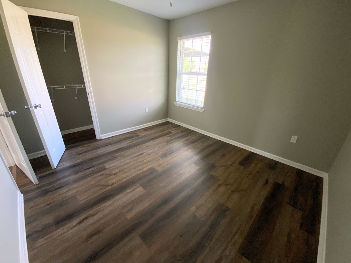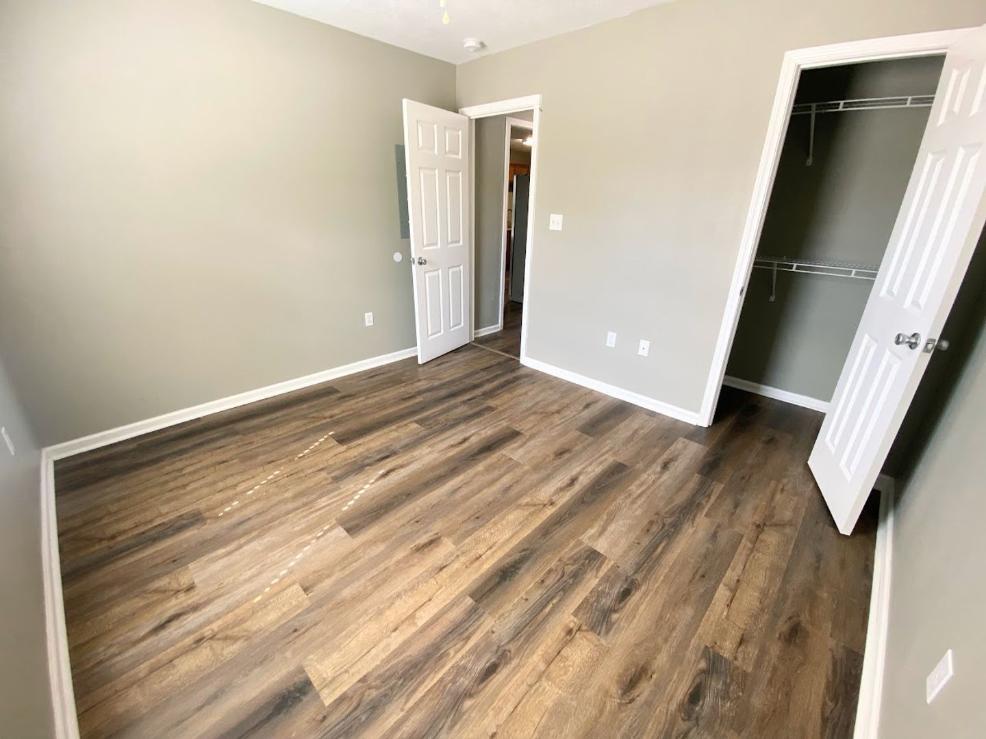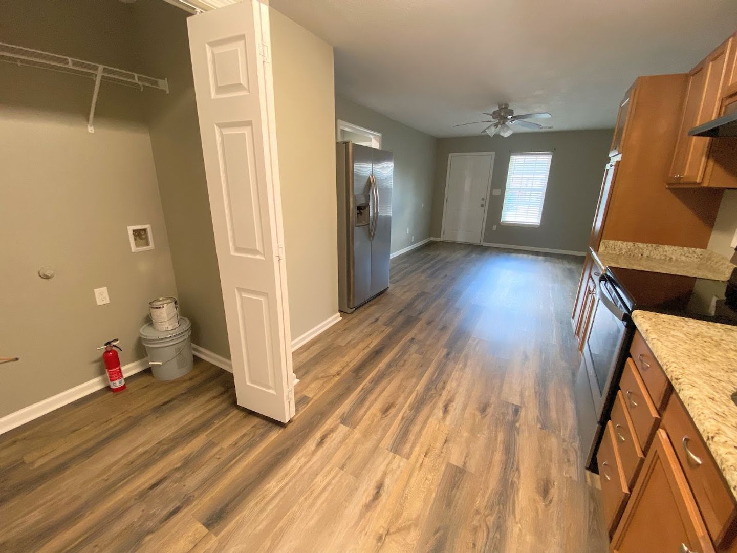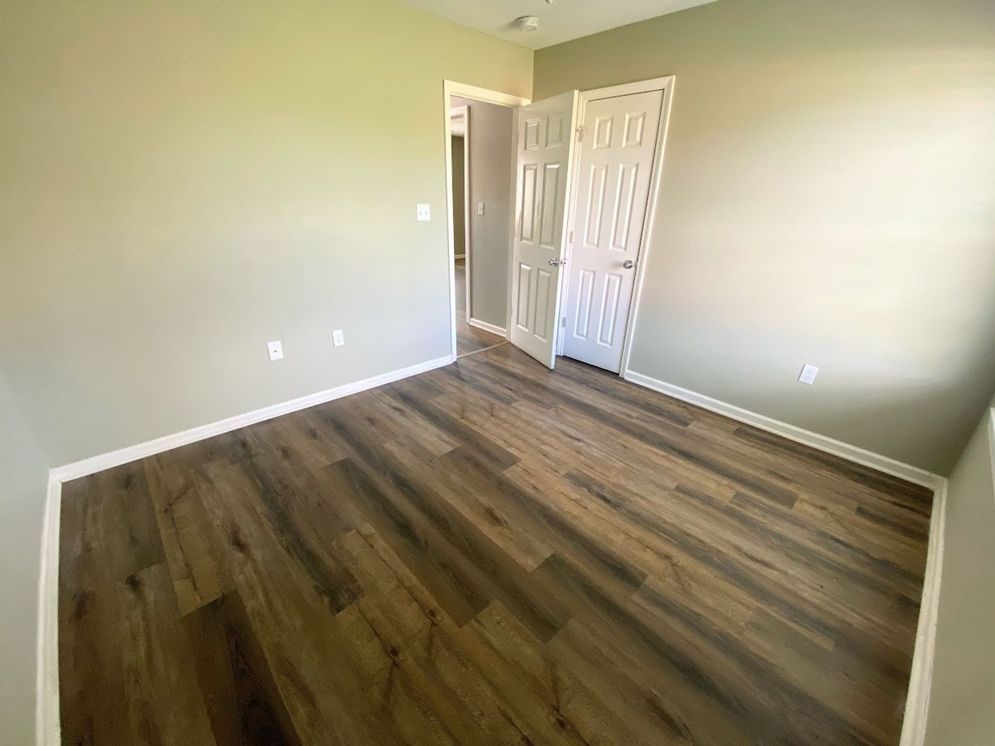 • Vinyl plank flooring, neutral paint.