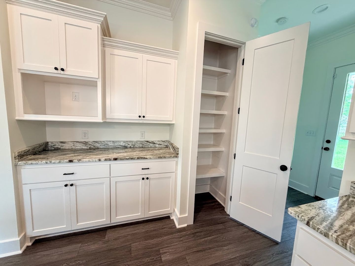 • Kitchen with granite countertops & custom cabinets